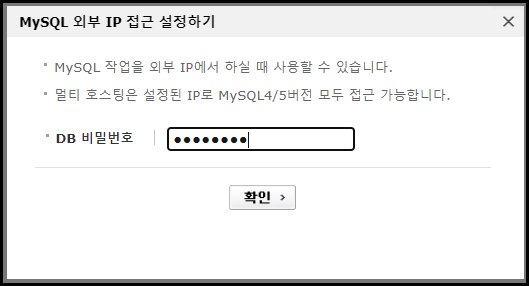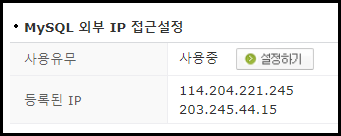 2. 나의 서비스 관리 - MySQL 외부 IP 접근설정 - DB 비밀번호 입력 - "네이버 내 IP 주소 검색" 후 IP 주소 등록