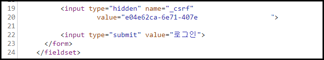 → EL의 값은 실제 브라우저에서는 ''_csrf' 라는 이름으로 처리 된다. 페이지 소스 보기를 통해서 값을 확인 할 수 있다.