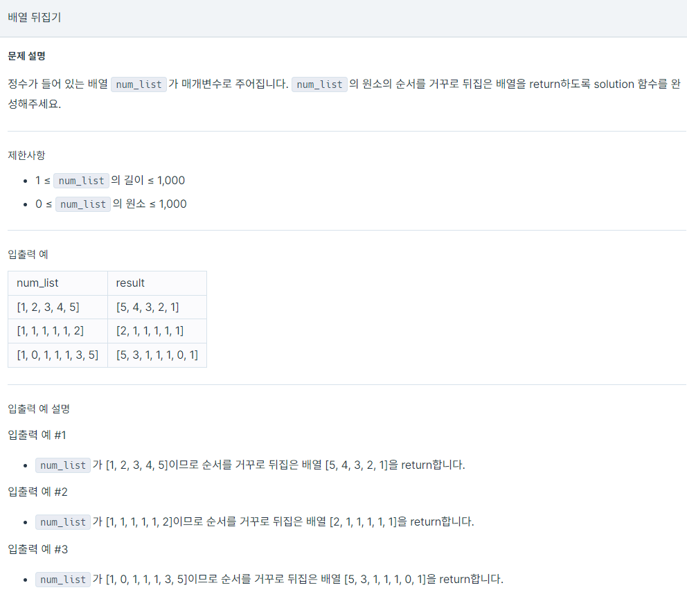 프로그래머스 lev0 - 배열 뒤집기 본문
