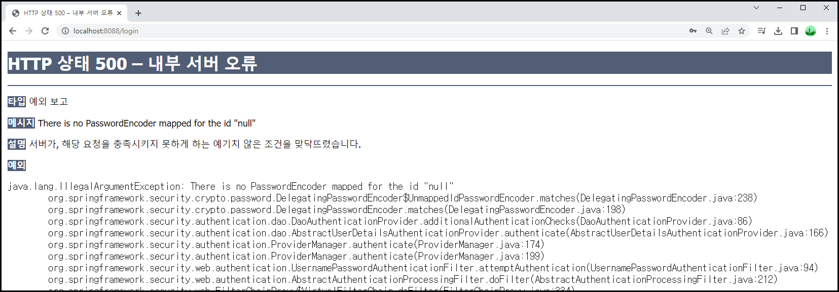 - 임시방편으로 {noop}을 통해 입력받은 값 그대로 값 비교
